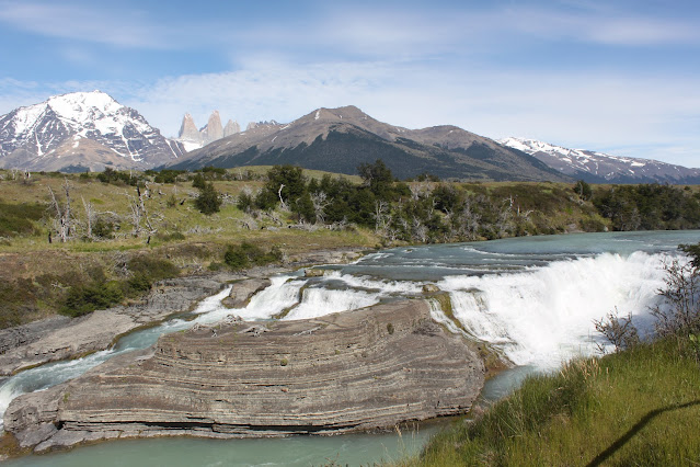 Dopo altre ore di viaggio siamo giunti a Puerto Natales che è un ottimo punto di partenza per visitare il Parco Nazionale Torres del Paine. Qui le condizioni metereologiche mutano spesso anche nel corso della stessa giornata e la guida ci ha detto che si possono avere addirittura tutte le quattro stagioni in uno stesso giorno. Noi siamo stati fortunatissimi perchè per tutto il soggiorno c'è stato sole, cielo sereno, e faceva caldo. A novembre in Cile è primavera. Il Parco viene considerato la ottava meraviglia del mondo e si consiglia di andarci proprio da ottobre a novembre e poi a marzo perchè negli altri mesi c'è troppa folla. Abbiamo visto il deserto patagonico, la steppa, fiumi, cascate, laghi di un blu intenso come il lago Pehoé o più scuri come il lago Gray dove navigano degli icebergs che si staccano dal vicino ghiacciao omonimo. Abbiamo pranzato presso l'Hosteria Péhoé circondata dalle acque blu del lago omonimo. Tutta la struttura era circondata da cespugli di ginestre in fiore. Abbiamo visto il bosco magellanico caratterizzato da alberi spogli, grigi che sembravano dei mostri. Si aveva l'impressione di stare nell'inferno dantesco. La guida ci ha spiegato che ciò è dovuto ai nemerosi incendi. Qui c'è un'altitudine di circa 2800 metri. Mentre viaggiavamo si stagliavano davanti ai nostri occhi le Torri del Paine che sono delle colonne di granito che si affiancano alla vetta del Paine Grande (3050 metri) e ai Los Cuernos che sono dei picchi sedimentari neri. Tutto era talmente meraviglioso che non sapevo dove guardare e fotografare. Questo parco è stato inserito nella Riserva della Biosfera dell'Unesco nel 1978 e qui trovano il loro habitat: il guanaco che appartiene alla famiglia dei lama, il nandù che deriva dallo struzzo, il condor andino. Ma vi dimora anche il puma che non abbiamo intravisto. Molti decidono di attraversarlo a piedi praticando il trekking e dormendo nelle tende. Anche noi abbiamo visto diversi guanachi e molti uccelli. Nel pomeriggio abbiamo fatto una sosta alla Caverna del Milodon, un monumento naturale, che è diventatta famosa perchè nel 1896 furono trovati i resti di un bradipo gigante chiamato Mylodon. Il giorno successivo alcuni di noi sono ritornati nel Parco con la guida mentre un altro gruppo ha partecipato ad un trekking organizzato per raggiungere le tre Torri del Torres del Paine con delle guide locali. Io non ho partecipato a questa attività. La guida locale ci ha fatto vedere tante altre meraviglie come la cascata del Paine, il lago Pehoé ed il lago Gray. Ho fotografato anche una volpe rossa che si trovava nella parte esterna dell'Hotel Lago Gray dove abbiamo pranzato e sembrava che fosse addomesticata.